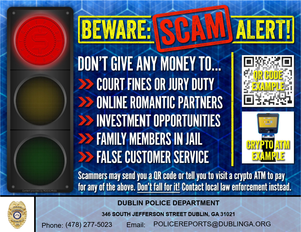 Report crime anonymously via Dublin Police Department's Crime Text program. Make a report by texting (478) 595-7279. Links, photos, videos, and other supporting evidence may also be included.