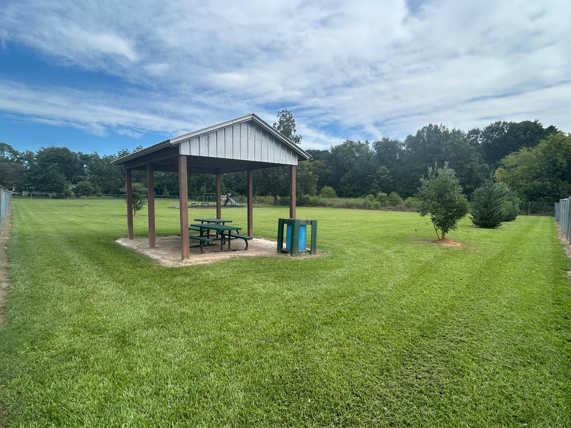 It includes a large pavilion with 3 picnic tables and 2 small pavilions with 1 picnic table each.